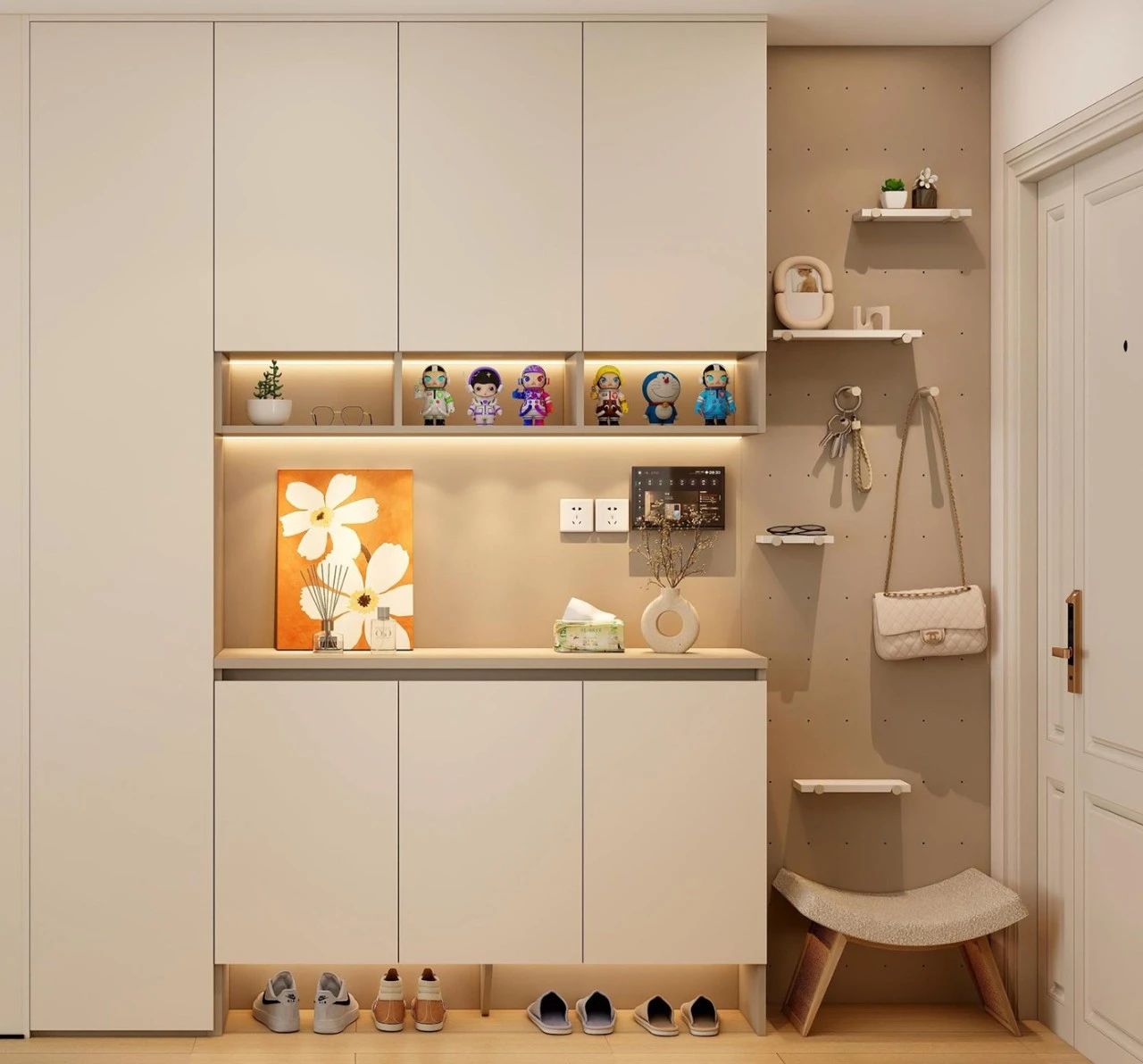 案例郃(he)集(ji)丨4款奶油風入戶(hu)玄關櫃,附內(nei)部(bu)布跼(ju)